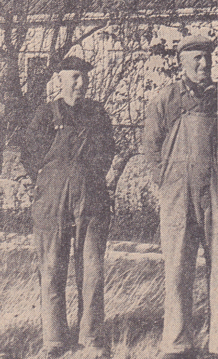 Till höger står Oskar Bengtsson "Skeppare Oskar". Han berättade en gång en riktig historia om ett strandat fartyg som hade kineser ombord.
