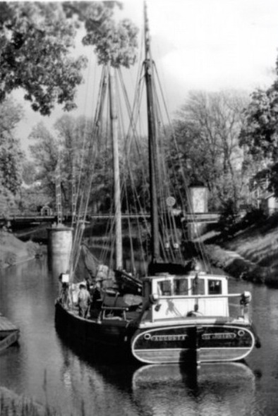 Bilden föreställer skonaren Anna Stina som här blivit omriggad till galeas. Hon hade Skärhamn som hemort från 1933 till 1946. Bilden kommer från bokverket Tjörns båtar.
