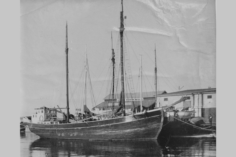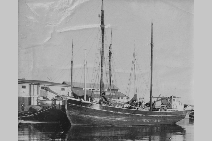 Galeasen är RUNA av Ven, regnr 5939, byggd 1917 i Viken, förlist 1965.