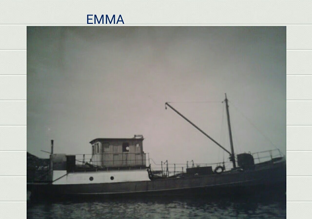 Ångfartyget Emma byggdes i järn på klink, av Carl Gustaf Hasselbom i Oskarshamn 1884, för köpare i Västervik. 1894 uppges hennes maskinstyrka till 40 hk. Hon kom till Skärhamn genom inköp på exekutiv auktion 1951, inropad av verkstadsägare Gustav Berntsson för 6800 kronor. Emma var då utrustad med motor från Bolinder på 20 hk enligt certifikat från 1934. Det framgår även att Emma var ett lastfartyg. Hon såldes 1952 för 2000 kronor och fick då Göteborg som hemort. Hon hade då byggts om till motortanker i Skärhamn.