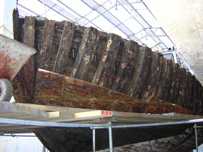 Vad det gäller fartyget på bilden så skulle ett par hundra kubikmeter virke, ett tusental bult, några tusen spik och ett par hundra kilo drev samt en korrekt barlastning göra susen.
