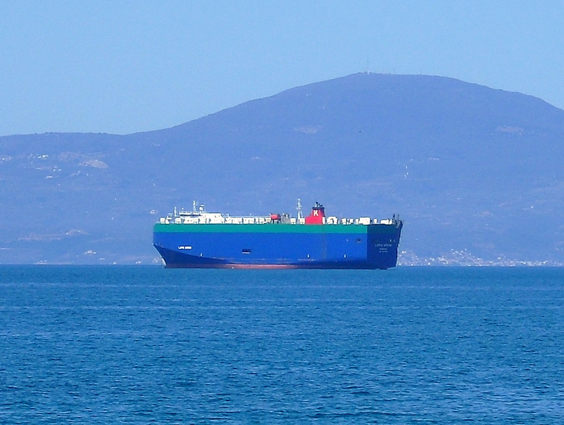 En som med säkerhet provianterade idag var Loxandra 9343871. Hon kom på morgonen och ankrade nära piren. Vid besök i hamnen idag på förmiddagen var de i full färd med att lasta en 17 meters plåtbåt från en lastbil. Det var färdiga pallar med allt möjligt, en pall målarfärg från Hempels, en pall banankartonger och 10-15 andra pallar med varor som med bilens kran togs ombord. Loxandra hade en kran på akterdäck där provianten togs ombord. Det tog mycket tid att få allt klart men vid 6-tiden hörde jag från vår terrass att de började lätta ankar. En stund senare var de iväg. Det blir säkert bananer till efterrätt ett bra tag. 92000 tdw på väg till Gibraltar.