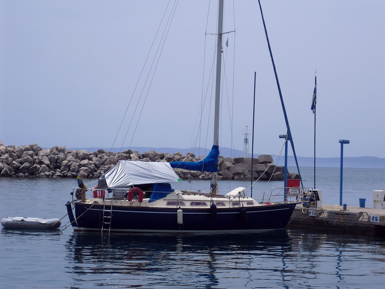 En svensk Allegro har letat sig till Kalamata marina. Drygt 30 fot gissar jag men det finns inget namn. Någon som vet vilken det är? (Kan det vara något annat än Allegro?)