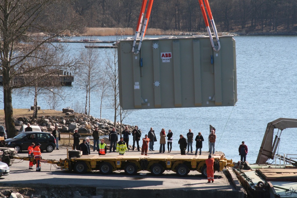 Christer Samuelsson skickade dessa bilder på Lodbrok av Piteå och Tug med en 200 ton tung transformator som transporterades mellan Värtahamnen ut till Larsberg på Lidingö under måndagförmiddagen. Man tycks ha slagit i stora PR-trumman med gott om mediafolk och reportage i lokala nyheter.