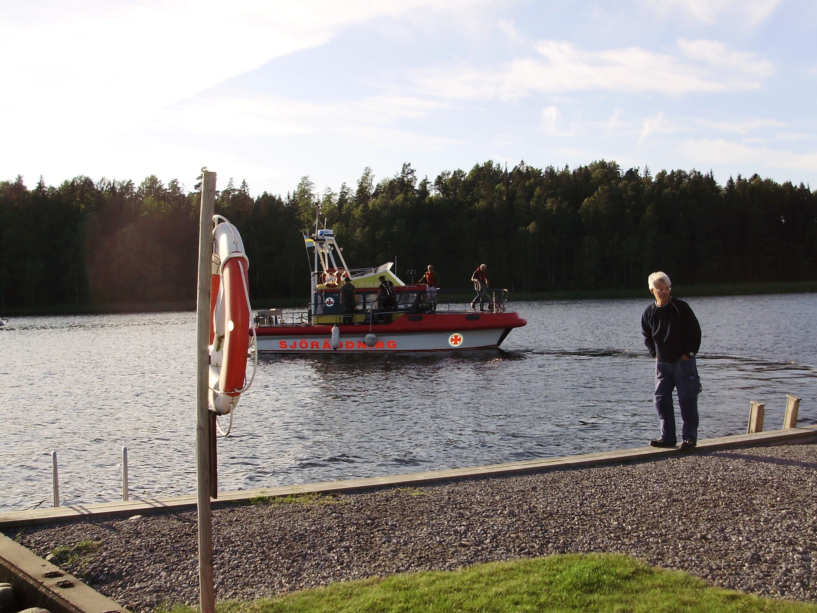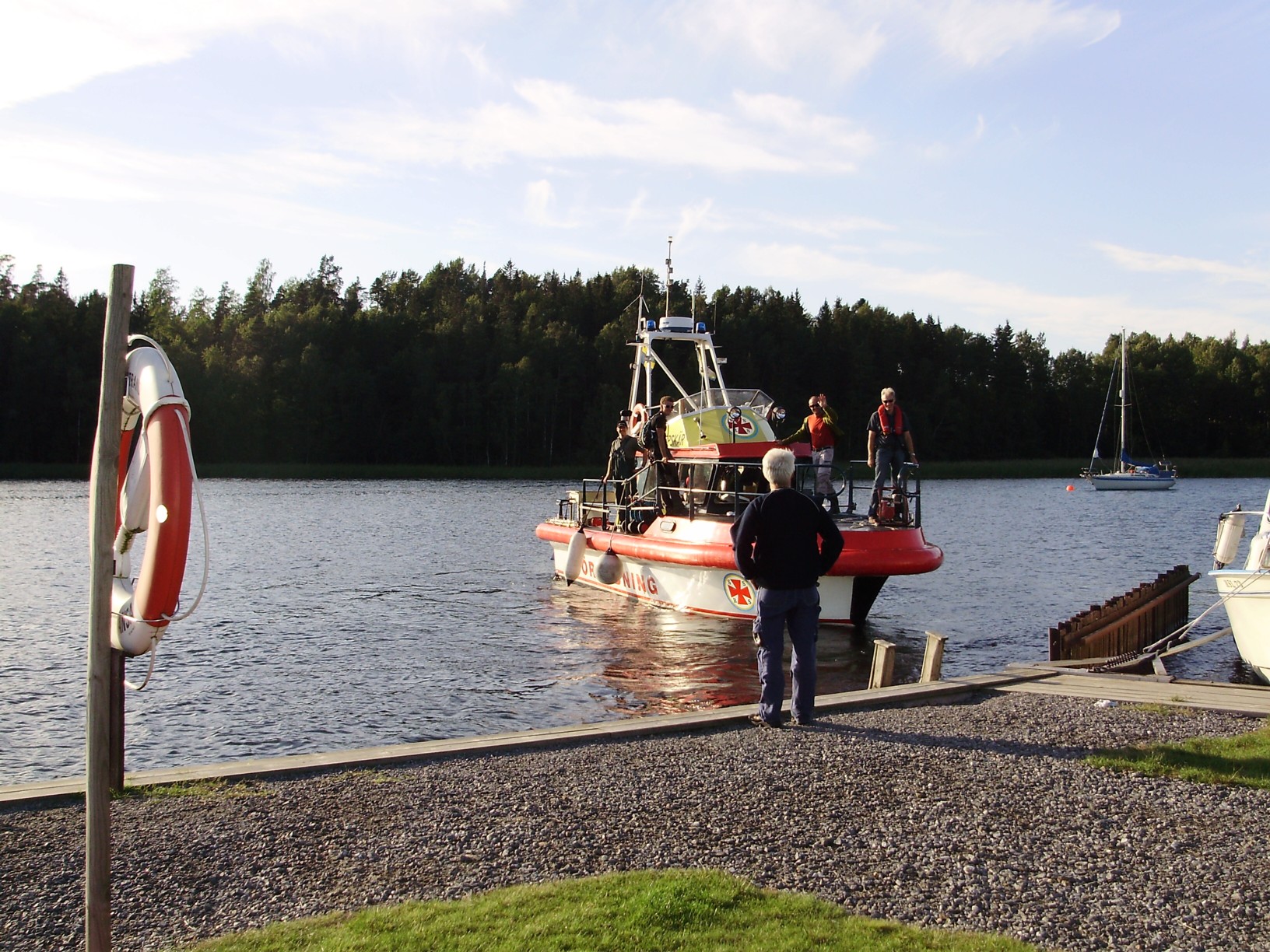 Skeppskär var tidigare i kväll (2009-09-01) inne vid Forsabrygga och plockade upp ett gäng för att sedan åter vända ut på Vättern igen. En blev vid första försöket kvar på land men plockades sedan upp.