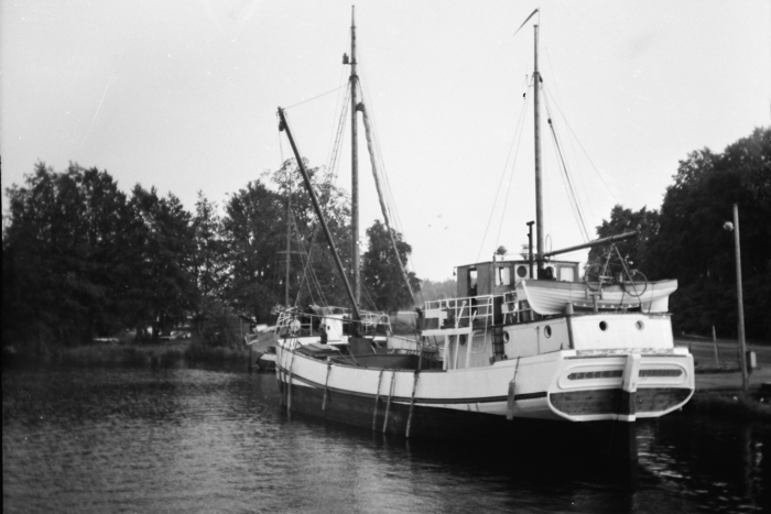Den okända svarta lastbåten torde vara 9583 GUNN-MARIE av Höviksnäs på Tjörn lastande 200 ton byggd i Brake 1906. Hon såldes till Finland 1967 för att sättas in i sandfarten. Såldes tillbaka till Sverige 1988 liggande vid Skeppsholmen Stockholm som lustfartyg.
