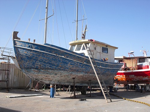 Häromdagen var jag på varvet i marinan och tittade. Där var full rulle med underhåll av träfiskebåtar och där var även en träbåt som hade börjat få plastkostym. Den som håller på att plastas var en ganska smäcker båt och den var nu helt rengjo0rd för färg och färdig för plastning. Däcket hade redan fått ett första lager av glasfiber. Däremot rörde man inget under däcket. Även Kustbevakningen anlitar varvet för upptagning och underhåll och som synes fick jag även två andra fiskebåtar i trä som höll på att underhållas. Det är nog den sista generationen av träbåtar. Jag kan inte påminna mig om att jag sett någon ny bruksbåt i trä. Men de som finns kommer nog att hänga med i ytterligare 20 - 30 år. Bland fritidsbåtarna är det sällsynt att hitta en träbåt idag.