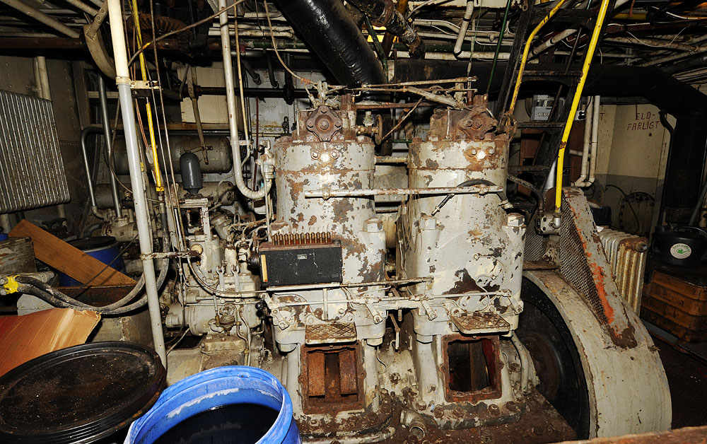 HARRYS huvudmotor är en Skandia tändkulemotor av typ 480 C. Den har 4 cylindrar (4 st 75:or) och är på 300 hkr. Totalvikten på motorn är cirka 14 ton. Maxvarvtal är 325 v/min men vid normal körning c:a 250. Total cylindervolym c:a 120 liter, cylinderdiametern är 320mm samt slaglängden 370mm. Bränsleförbrukningen vid normal marschfart c:a 25 liter i timman.