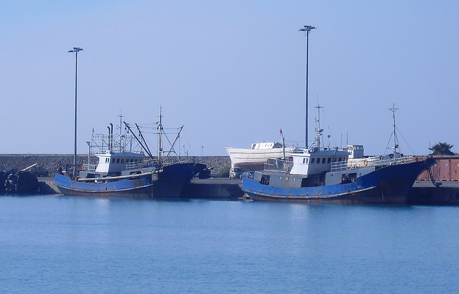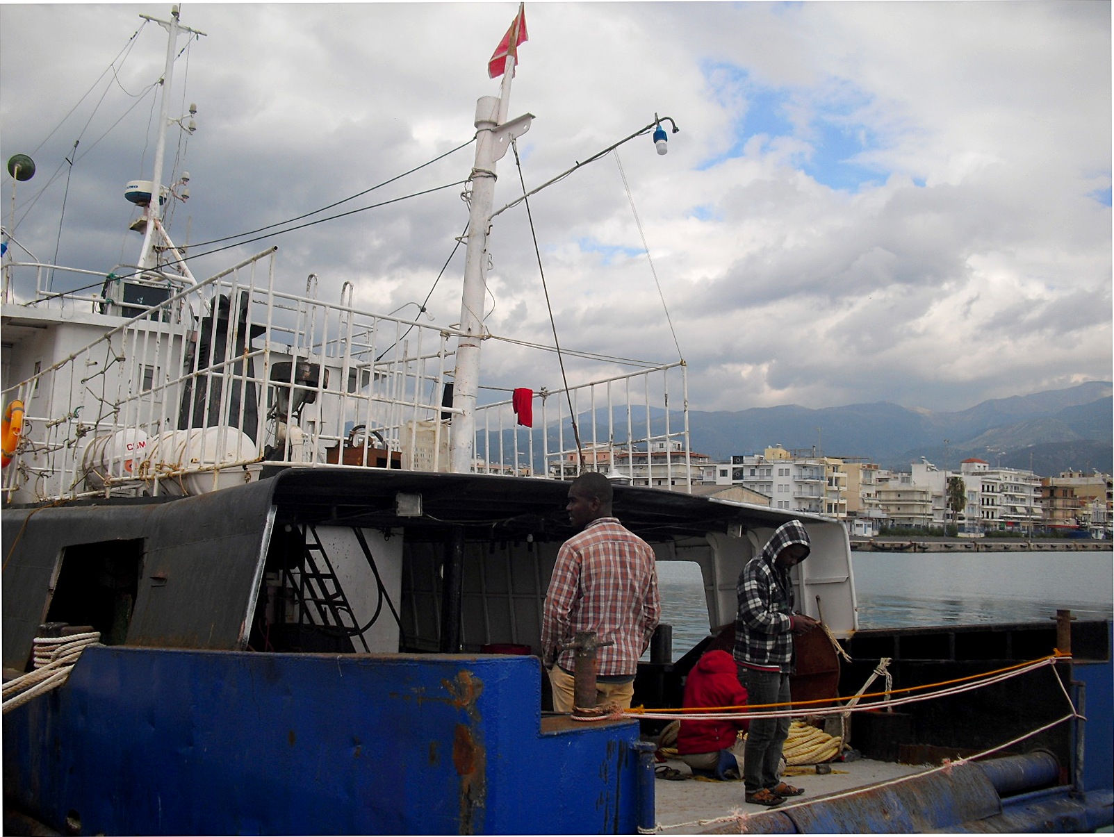 De här två kom i förra veckan. De kommer från kusten av Sudan i Röda Havet och skall till Västafrika och fiska. Säger dom. Åtminstone den ena av dem har en stor tråltrumma på akterdäck och väldiga stänger utefter sidorna som fälls ut när man sätter trålen. Dåligt underhållna är de och det fanns åtskilliga rosthål. Jag fick information att de är härinne för proviantering och vatten. Mycket knackig engelska så det var svårt att kommunicera. Jag såg bara färgade men inga kineser. När de kom så syntes åtminstone den ena på AIS och då var den nämnd som nöjesbåt, fritidsbåt. Jag kommer inte ihåg exact och sedan de kom i hamn så är AIS nedsläckt. Kanske de sätter på den när de kommit iväg igen när det nu kan bli. Den kinesiska flaggan syns på en av bilderna. Det stod även på AIS att de var kinesiska.