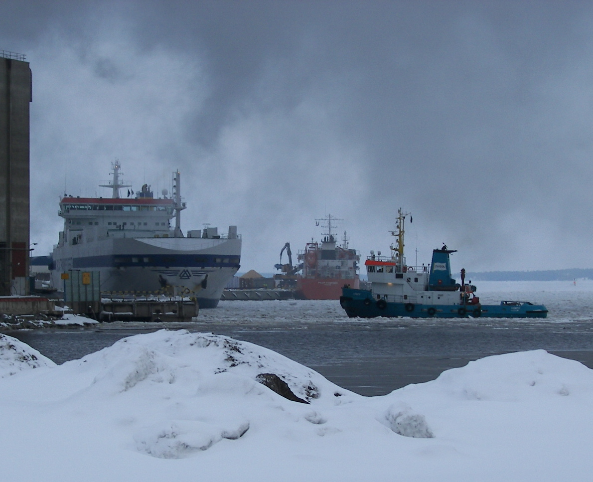 Ryssen ser ut att ha Archangelsk som hemmahamn. Hon ser onekligen lite lustig ut. Detta gäller även alla "Vika"-båtar, här Västanvik, efter att rederiet anammat en mönjekulör som färg.
