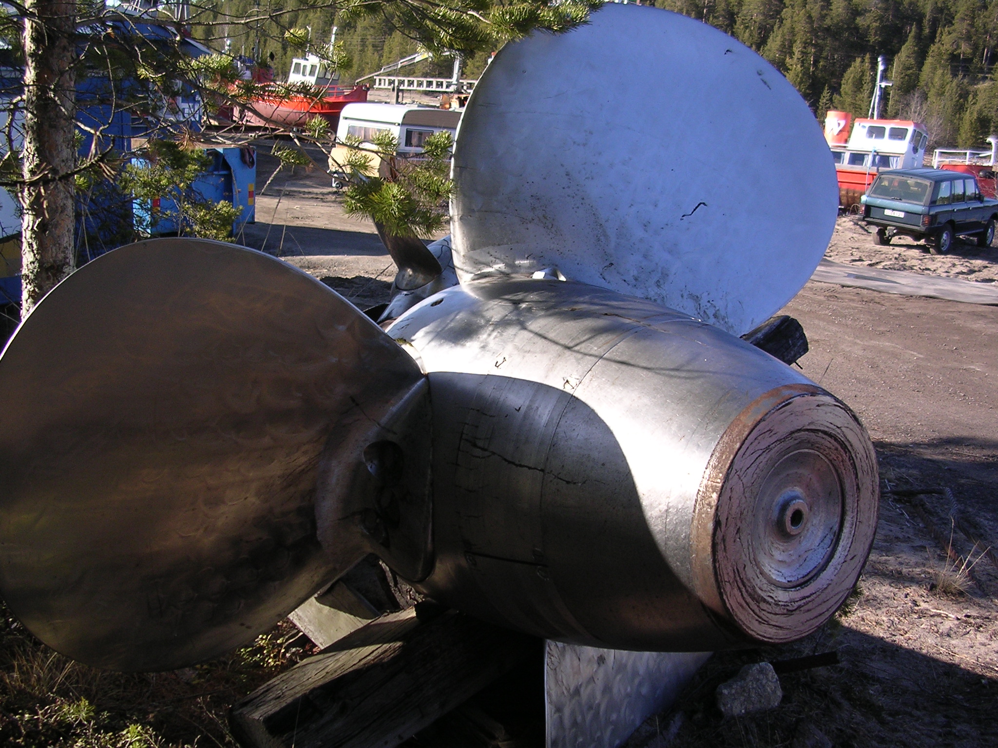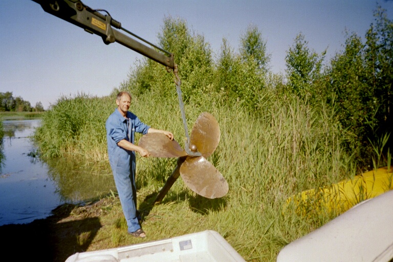 Dessa foton fick jag från Island. De ville ha hjälp att identifiera fabrikatet på denna propeller. De hade fått den i trålen tror jag, och trodde att den ev. kunde vara svensk.