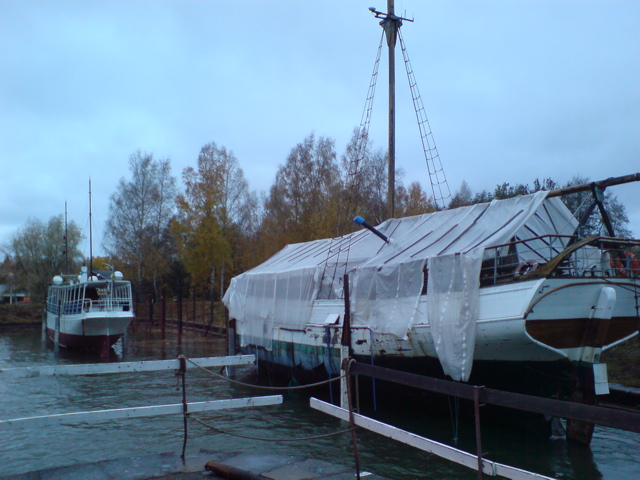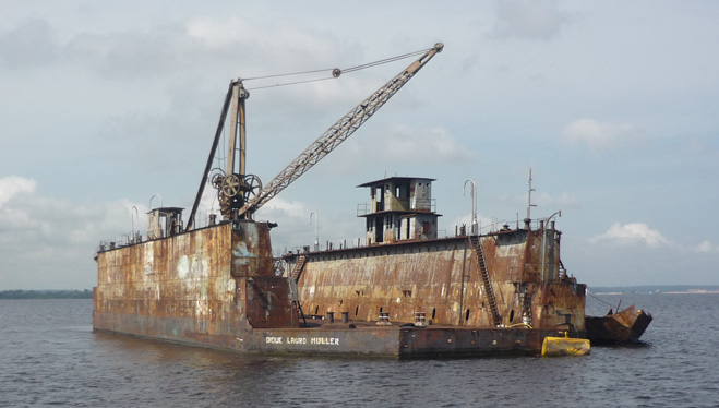 Det är ju länge sedan jag var inne på forumet. Jag tänkte bidra med bild från mitt senaste dockbesök. Lauro Mullers dry-dock i Manaus. Manaus är sista utposten i Amazonasfloden. Här finns massor av slipar och småvarv och man bygger pråmar, båtar och fartyg i både aluminium, stål och trä. Bygget av träfartyg börjar minska på grund av, hör och häpna, bristen på virke. Det mesta av skogen här är delar av reservat och skyddad. Därför bygger man bara av flytvirke och stormfälld skog. Återkommer med lite mer bilder härifrån floden.