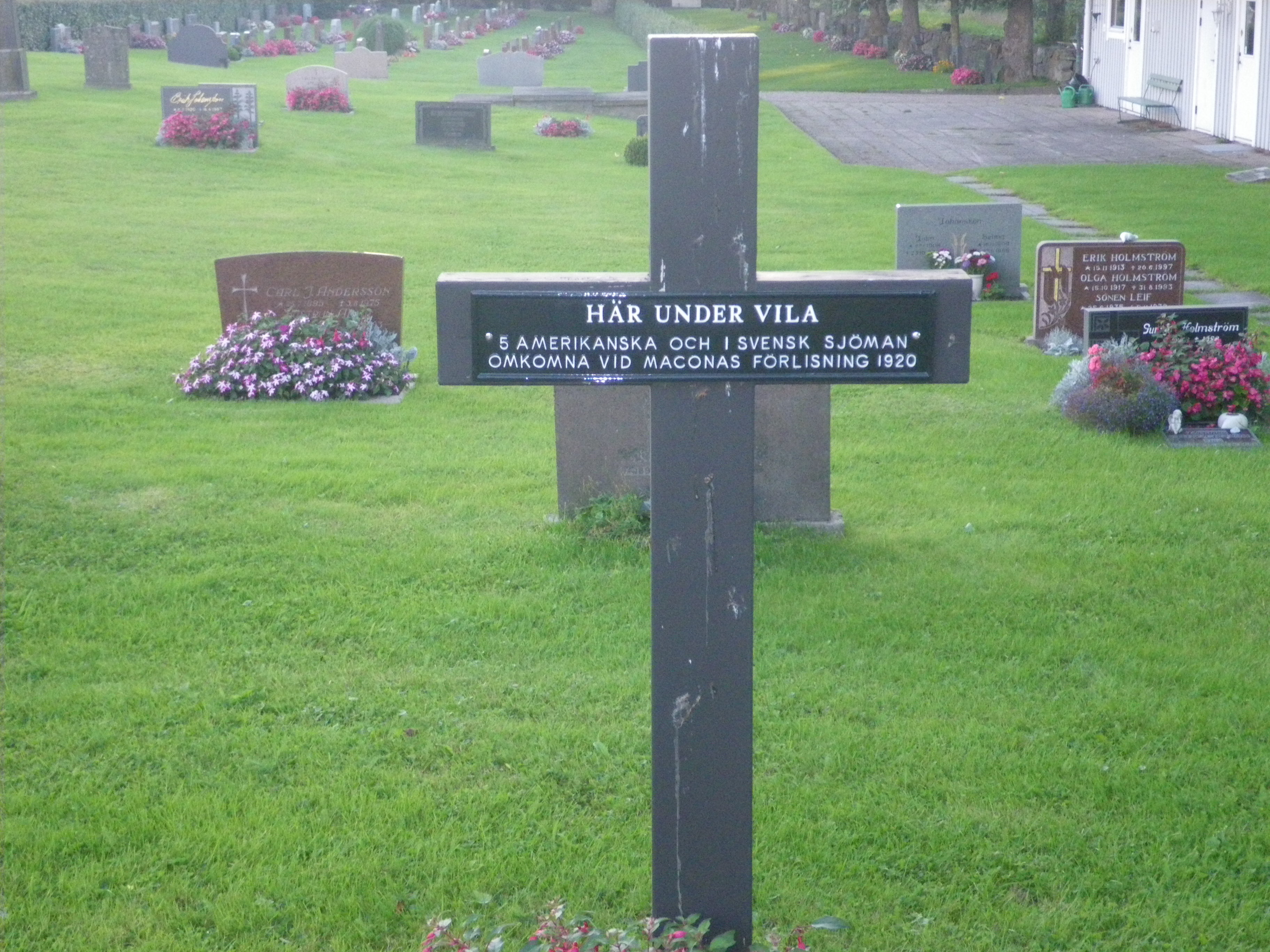 Morasso fick den tunga uppgiften att försöka identifiera sina döda skeppskamrater då de flesta efterhand flöt iland längs kusten. Drygt en tredjedel av Maconas besättning ligger begravd på Lindbergs kyrkogård (se bifogade bilder) men det finns även Maconagravar på kyrkogårdarna i Torpa, Åhs och Värö.