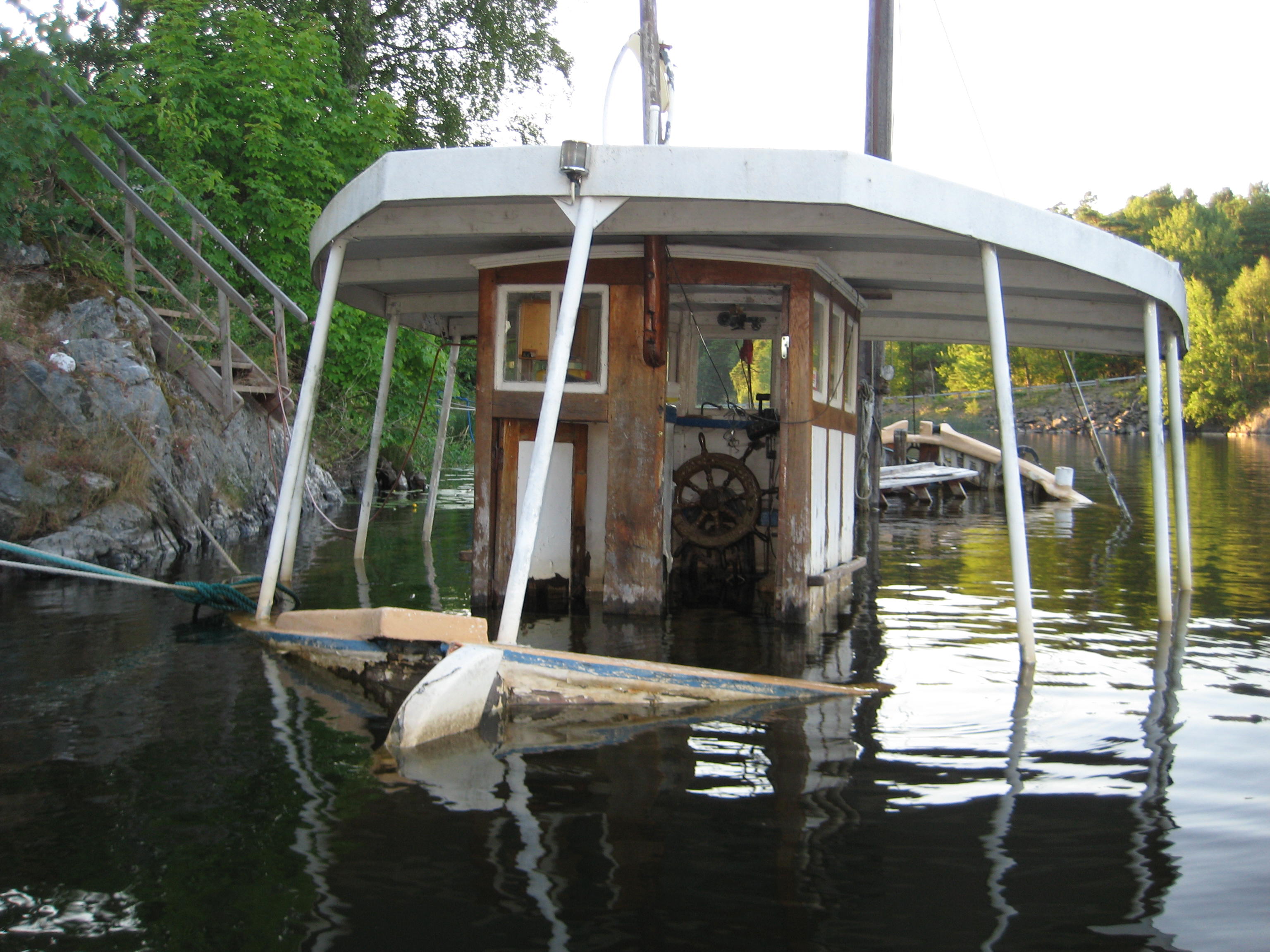 Appropå vrak så fann jag reling och styrhytt bärgat från vraket i sjön viken, göta kanal vid rosendala. Står nu i scouternas förvaring på fastigheten intill vraket.