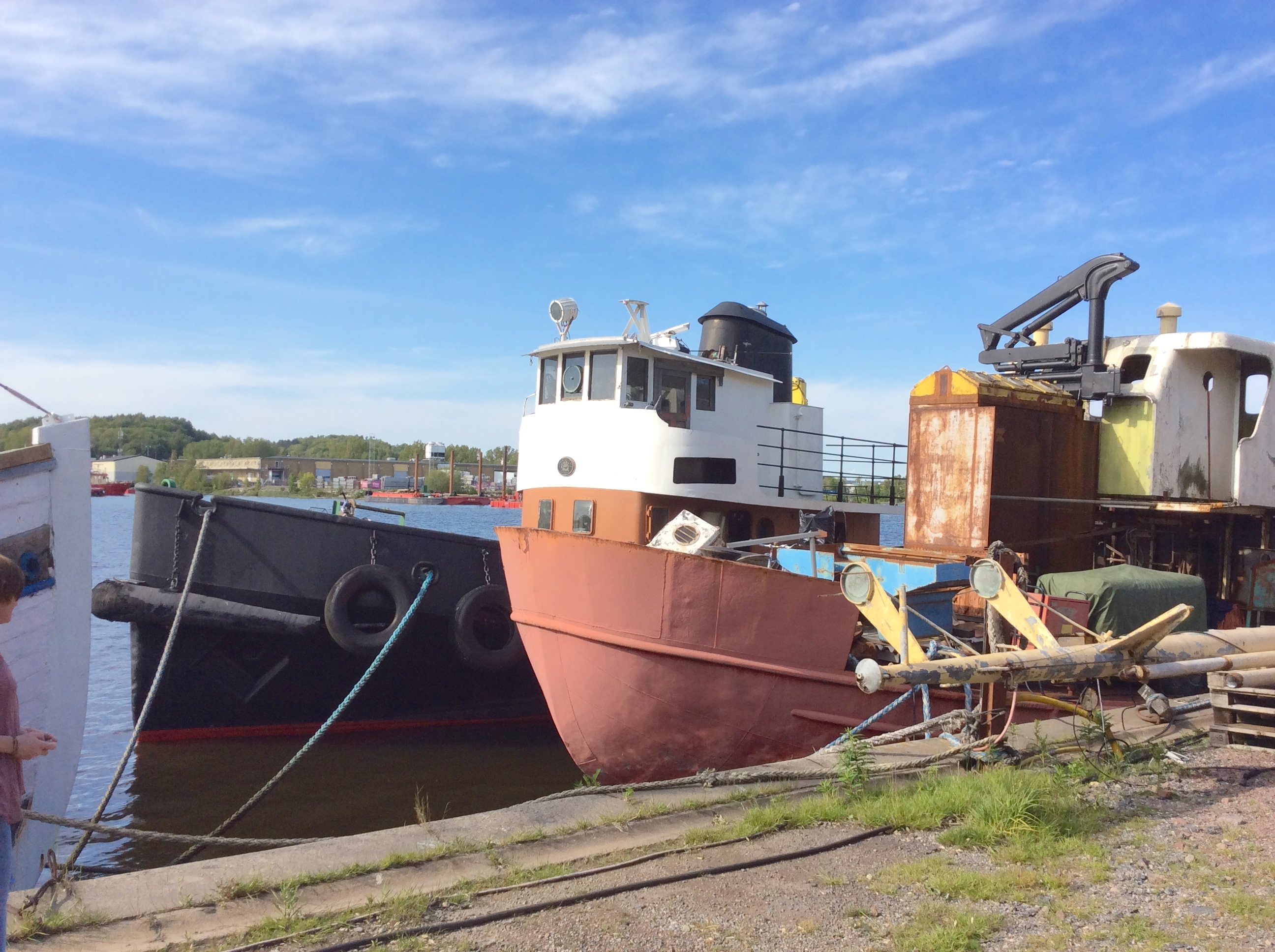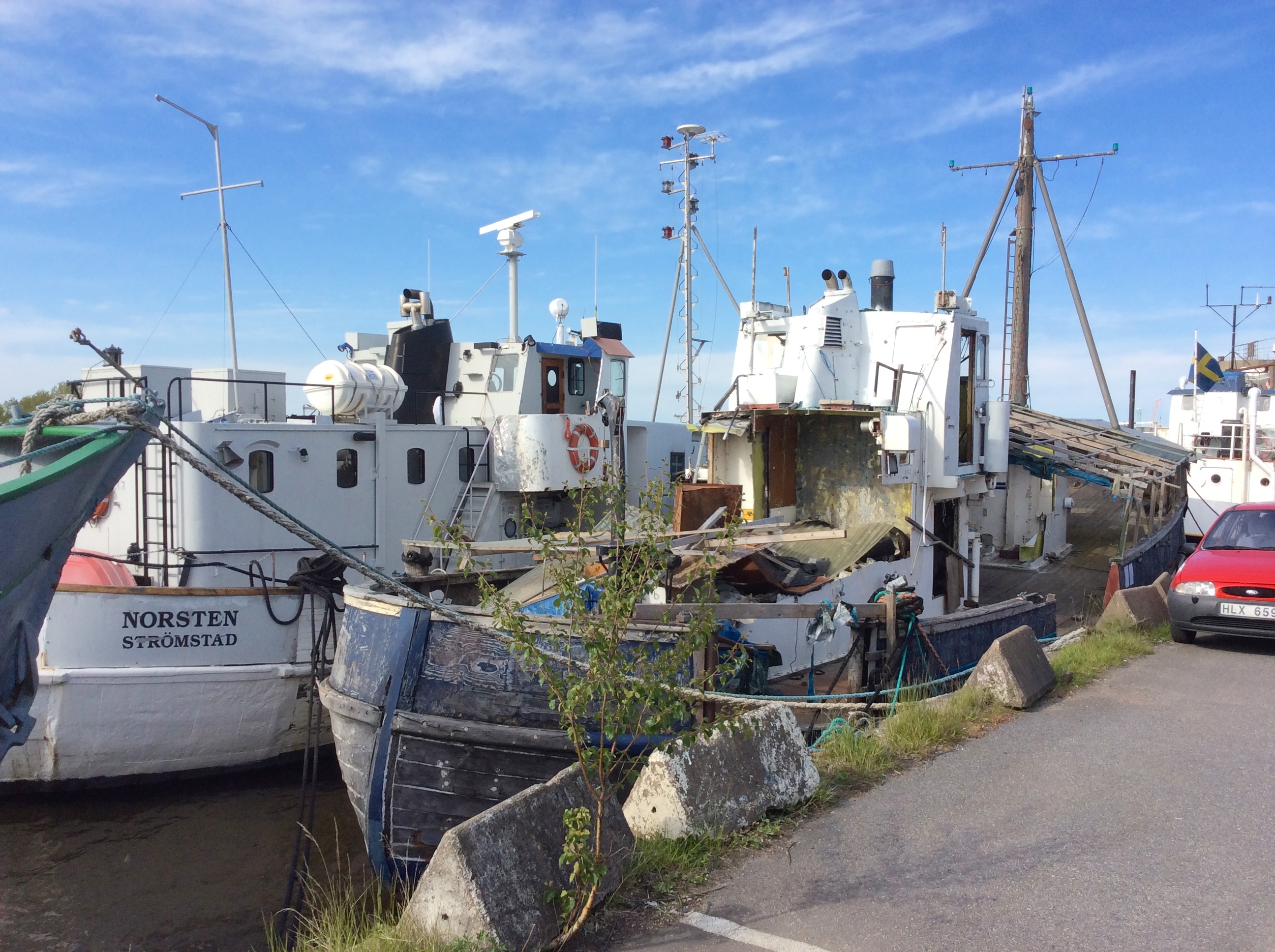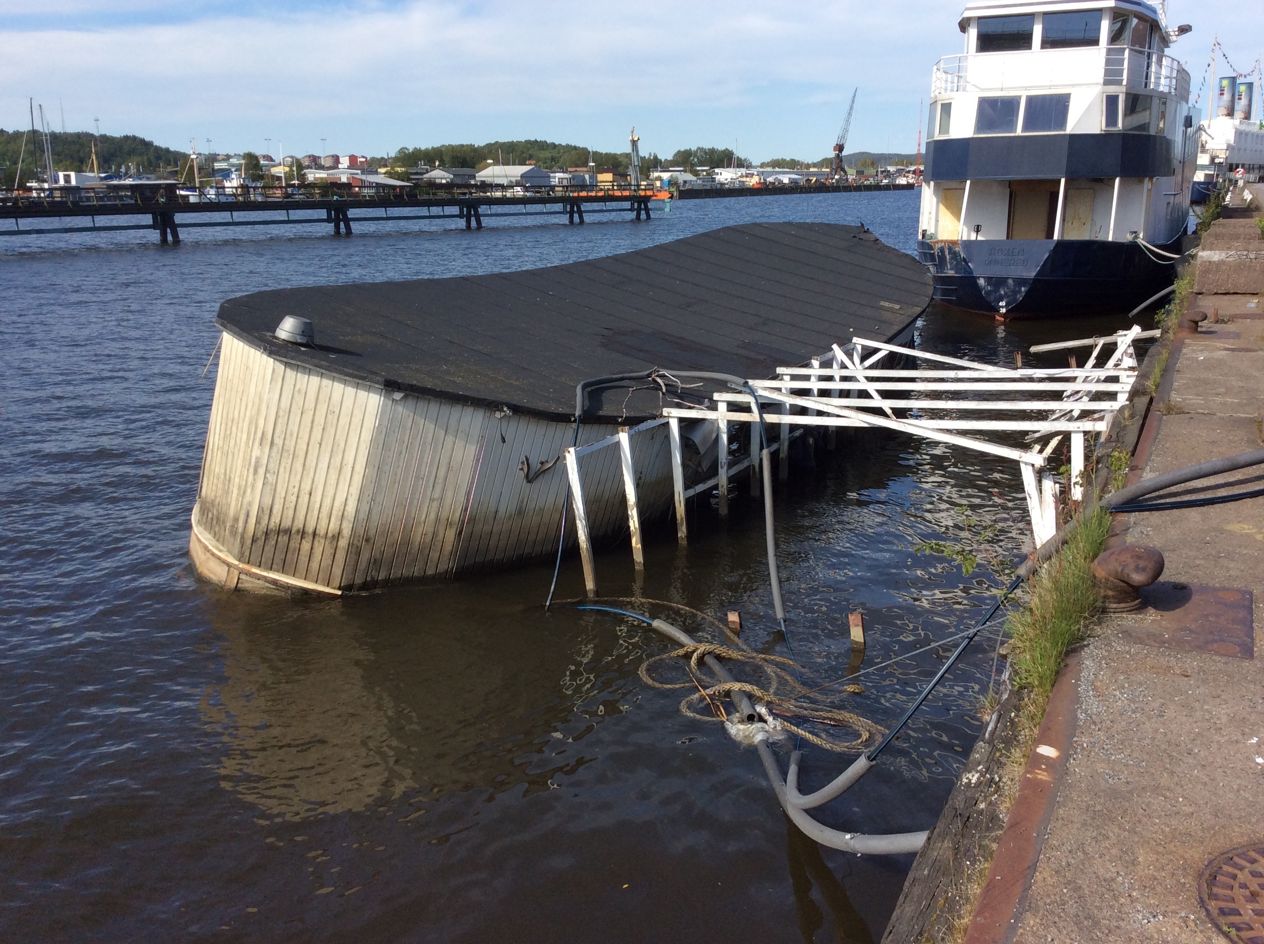 väl framme vid Drömmarnas kaj såg det bedrövligt ut. strax utanför kajföreningen låg några underliga flytetyg, eller sjunketyg rättare sagt..
