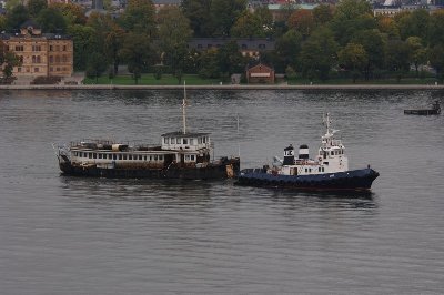 (Sjösidan är en resturang båt i betong som sjönk i somras, i sthlm, nedanför slottet.)