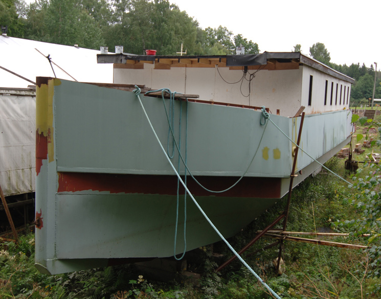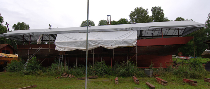Bilden är tagen av Michel Dumoulin som även bogserade den åt Bernt till dockan med en 40 hästars landstigningsbåt.