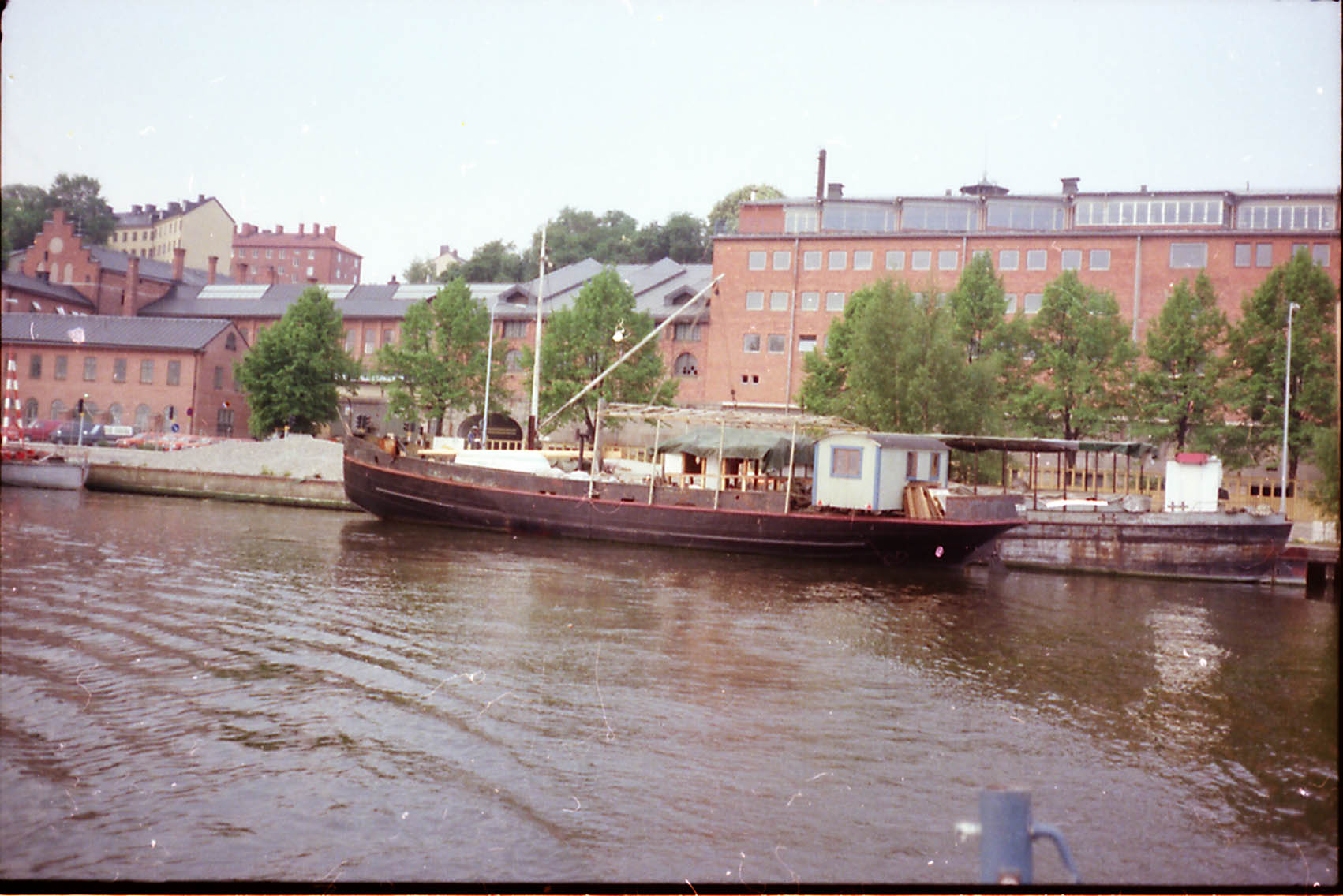 En bild på Tramp tagen på Södermälarstrand 80-81 innan bogsering till Hjälmare Docka.