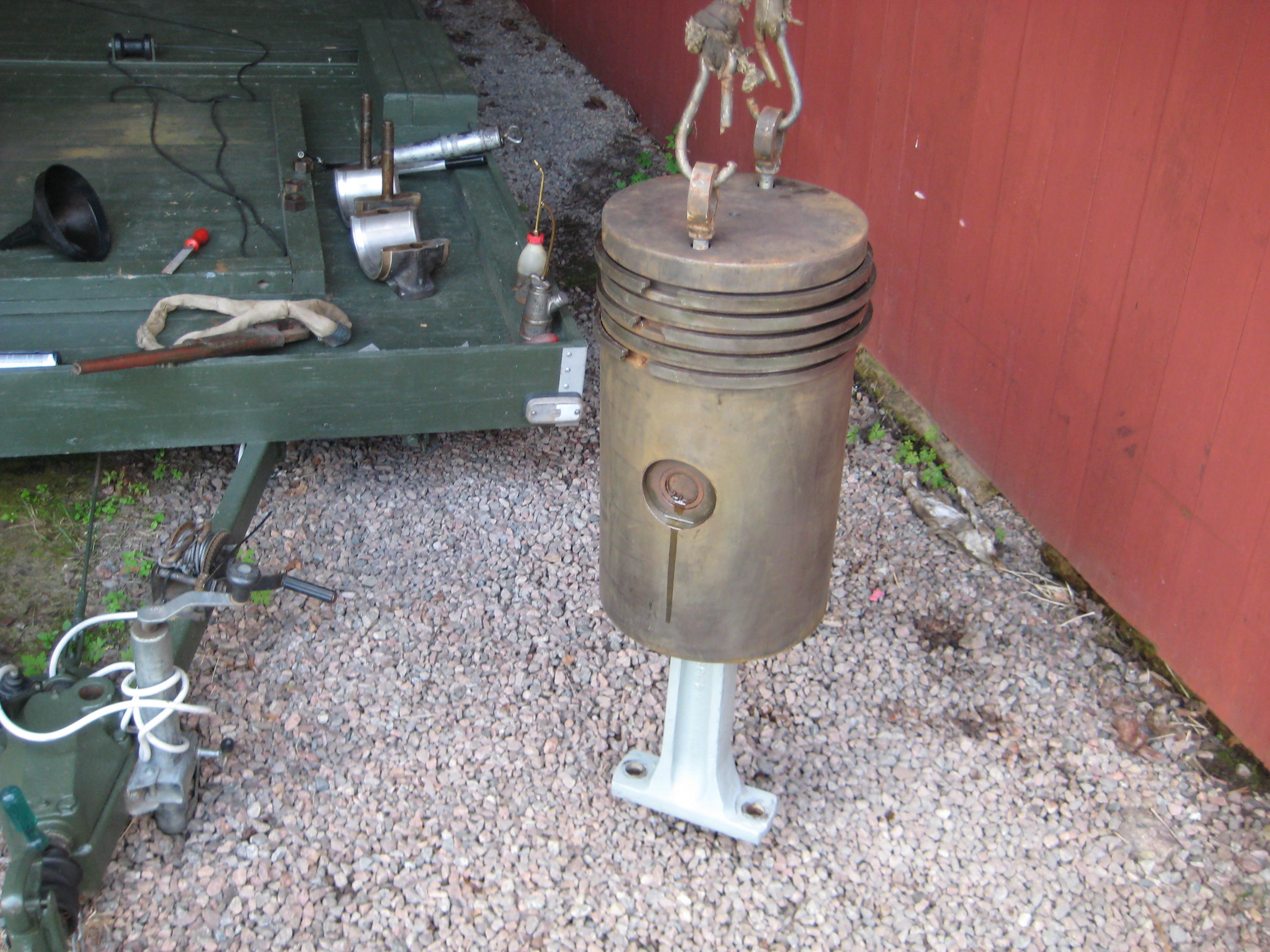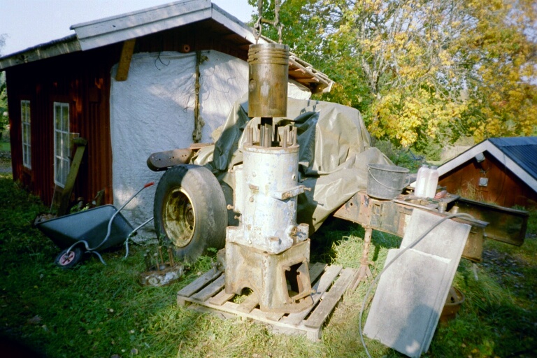 men när den var nära startklar så kroknade han av nån anledning ...,när sen frun några år senare ville ha en garageplats så var problemet att där stod 6 ton motor ! gratis om vi hämtade den ! den var komplett med koppling ,avgasrör ,mm