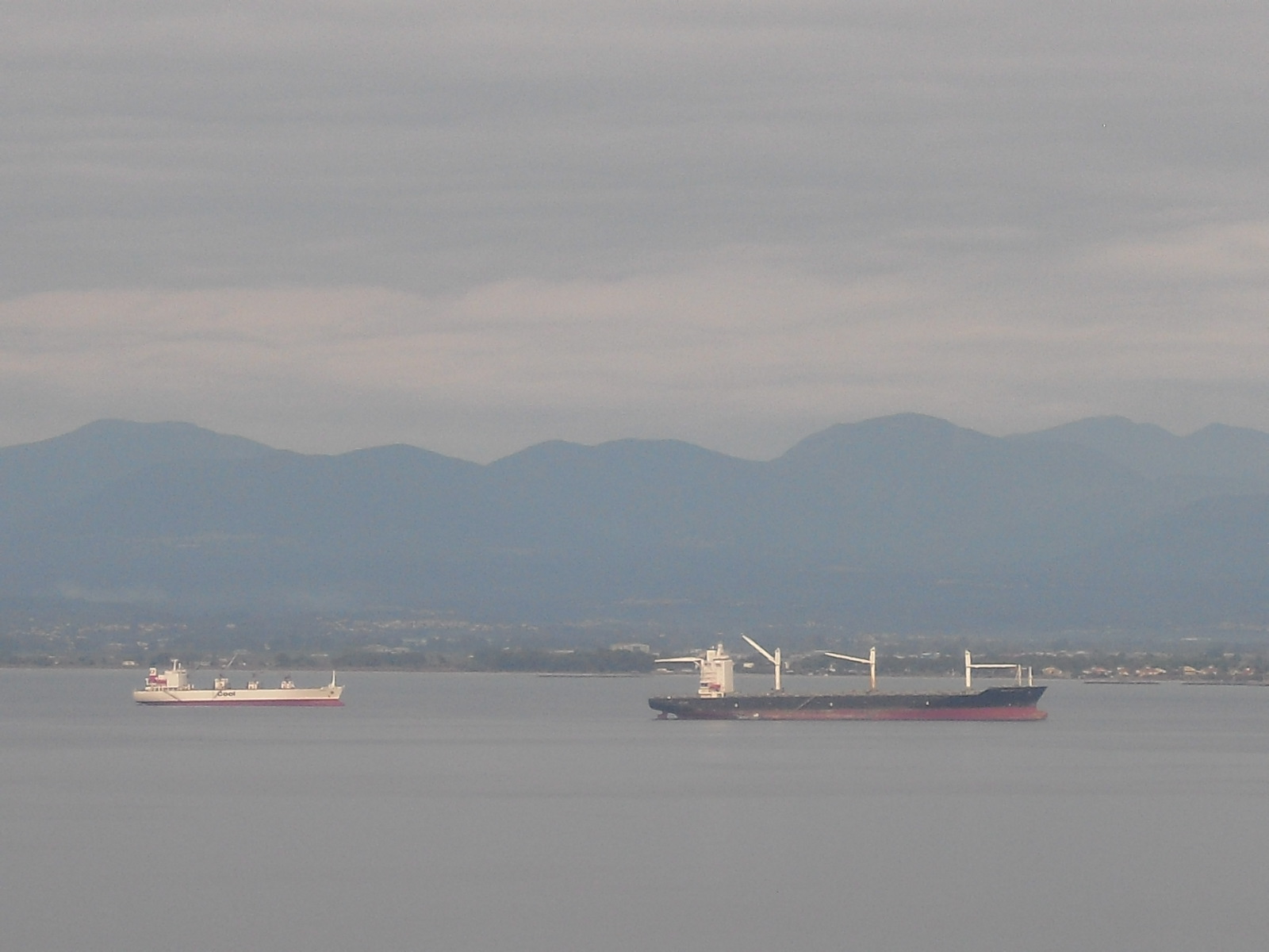 Idag på morgonen var det 2 fartyg på gång framför balkongen. Det var Chaiten IMO 6423369 som redan låg för ankar ute på redden. I kikaren kunde jag läsa COOL på fartygssidan, och det visade sig vara ett kylfartyg på lätten som kommit in och ankrat upp. Liberiaflagg.