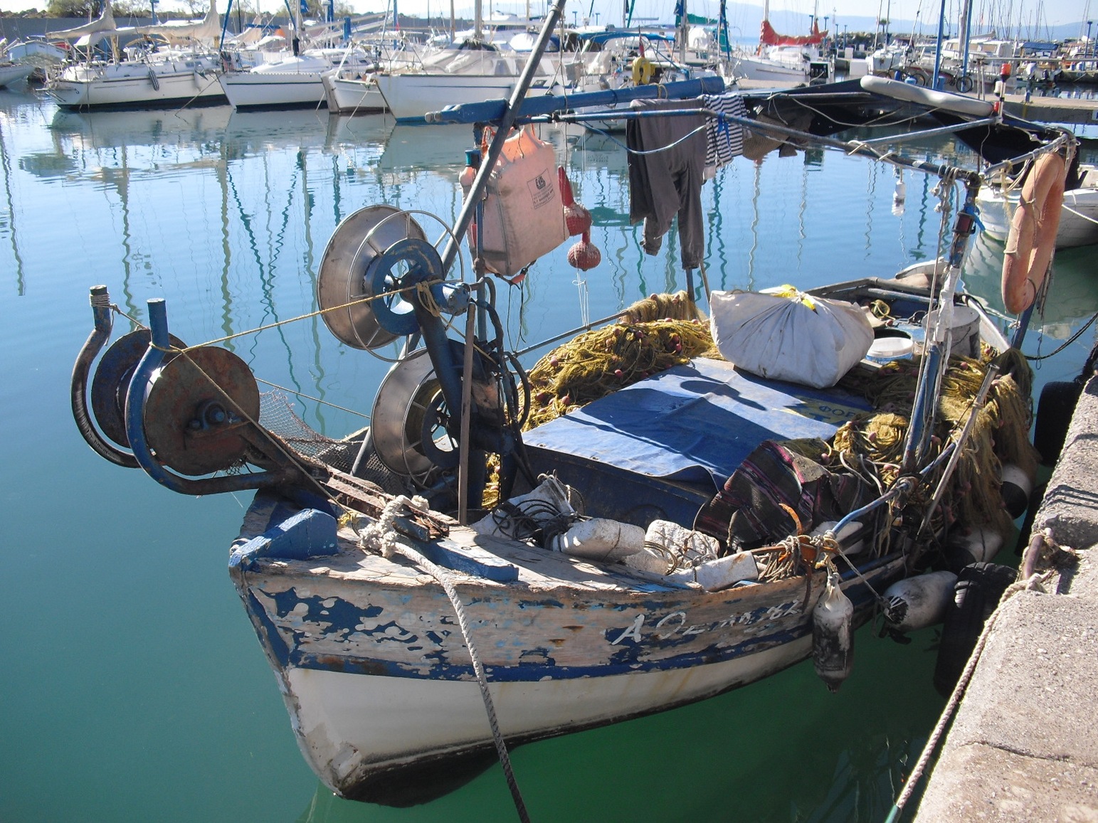 Den andra en utsliten fiskebåt 5 - 6 meter som fortfarande får göra tjänst. Den är så sliten att en del av sargen runt översta bordet är utnött.