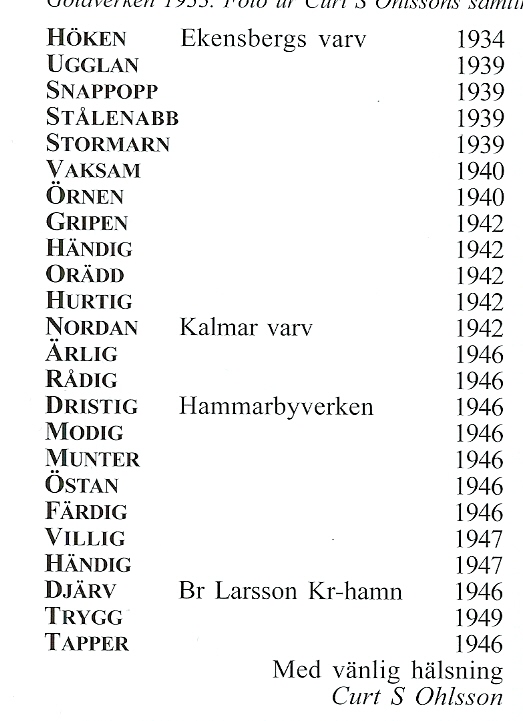 Här kommer resten. Det är en hel del tvistande om vilka båtar som är byggda när och var...
