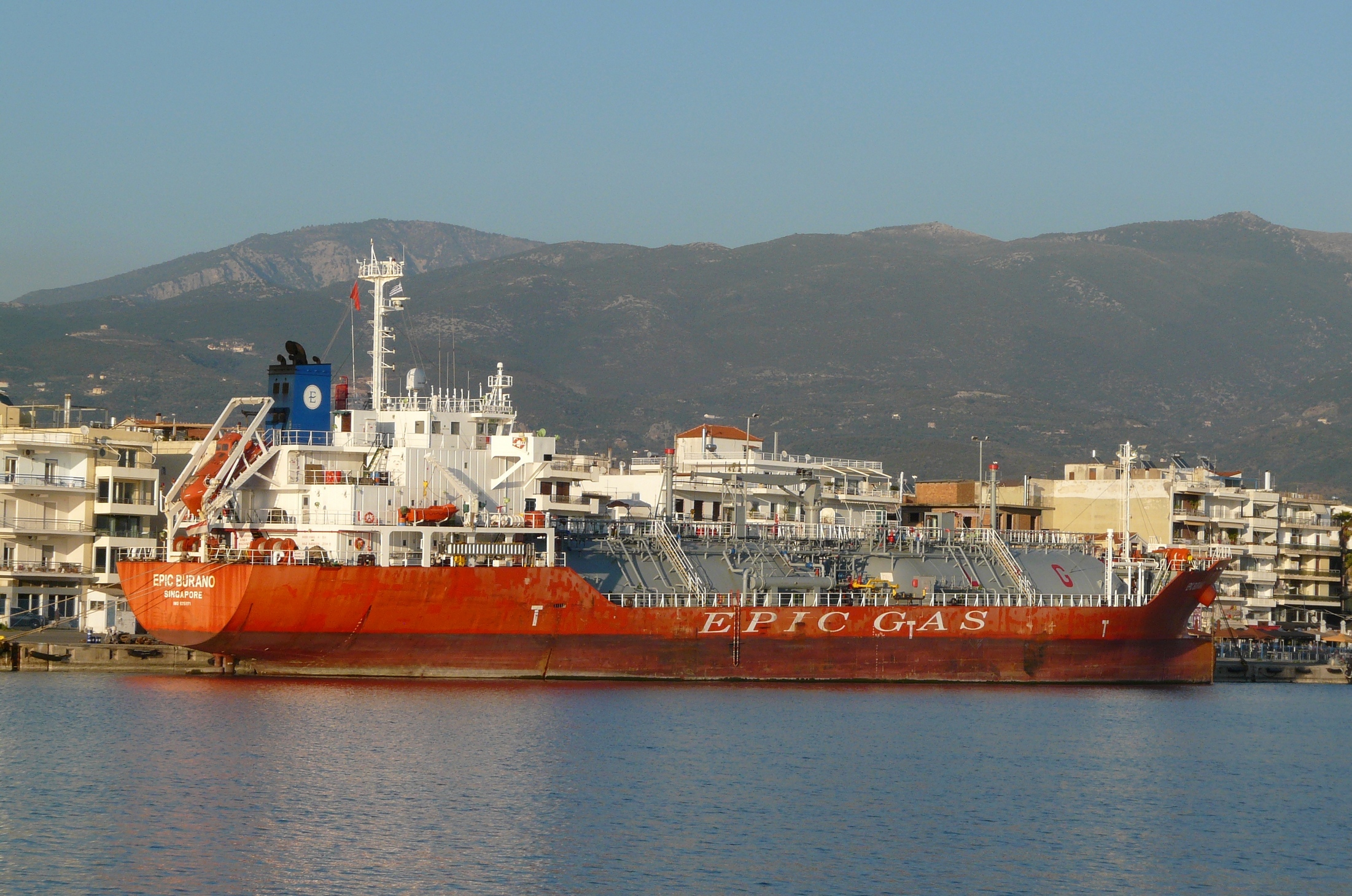 Den här tankern, Epic Burano, gick in i vår hamn igår. Hon hade en bogserbåt i beredskap men jag tror hon gick in själv. Det är en Lpg tanker på 7000 tdw, 119 meter lång. Kryssningsfartygen är betydligt längre. Tankbilar på kajen, kan man gissa att det rör sig om rengöring? Eller liknande? Tankbilarna kommer från Aten. Hon ligger inte djupt.