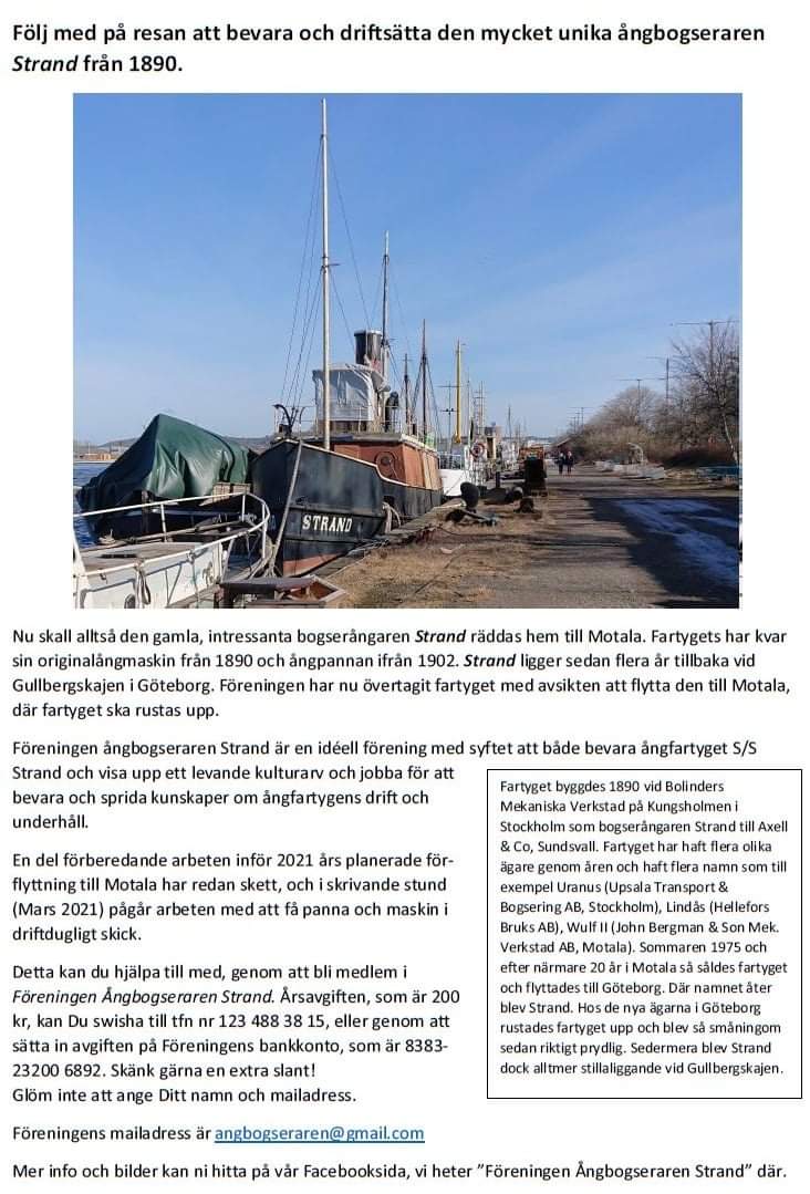 Hørt att några tar hand om Strand & att hon ska "dit hon hør hemma, Motala" & man får la hoppas dom nya ägarna inte kastar in handduken. Nu slipper de førhoppningsvis bli kinastål av ytterliggare en gammal fin båt..?