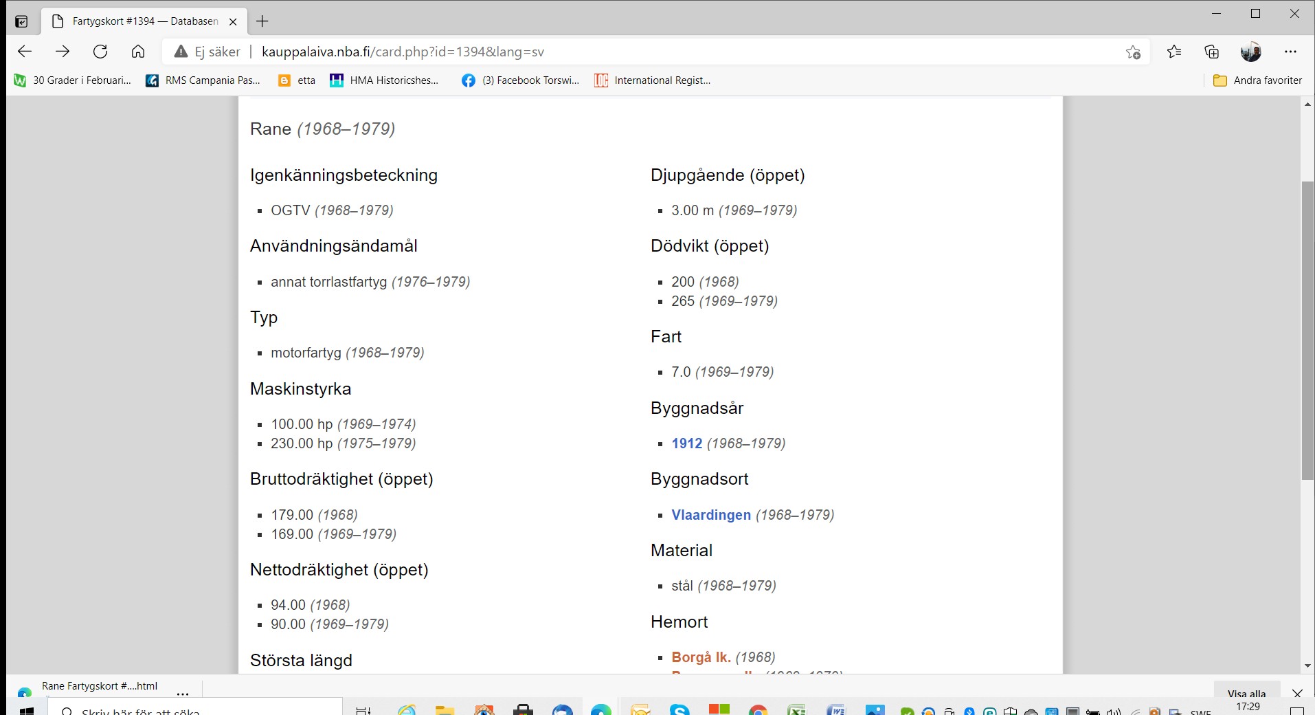 Re Rane - mejla Sjöfartsregistret och fråga, vad 1969 står för.