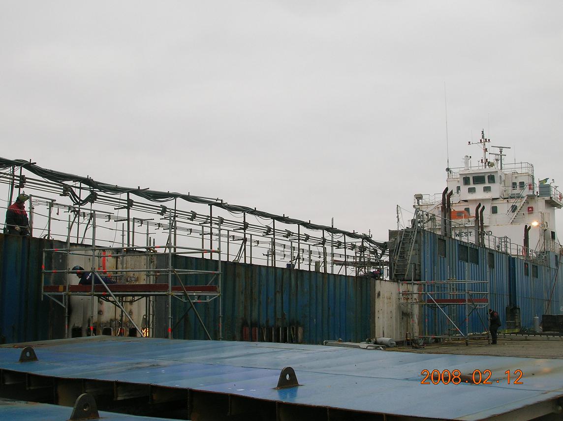 Man skall ha två dockportar som stödpontoner vid lyften.