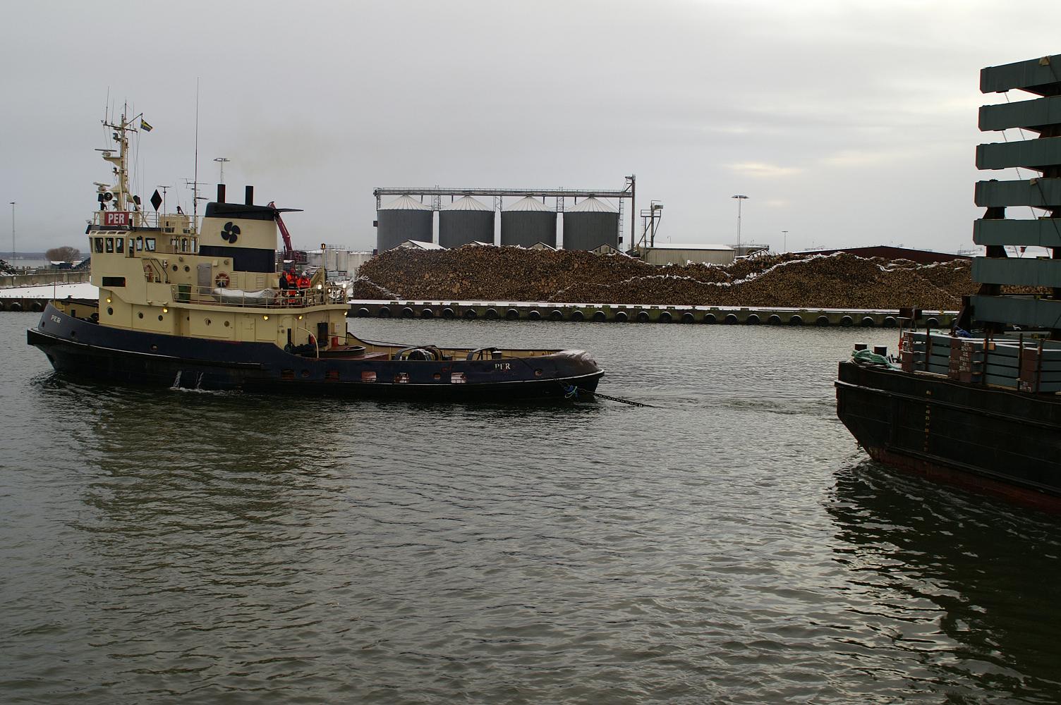 De sista frakt skutorna fick dras sista biten in till kaj med lastbil.