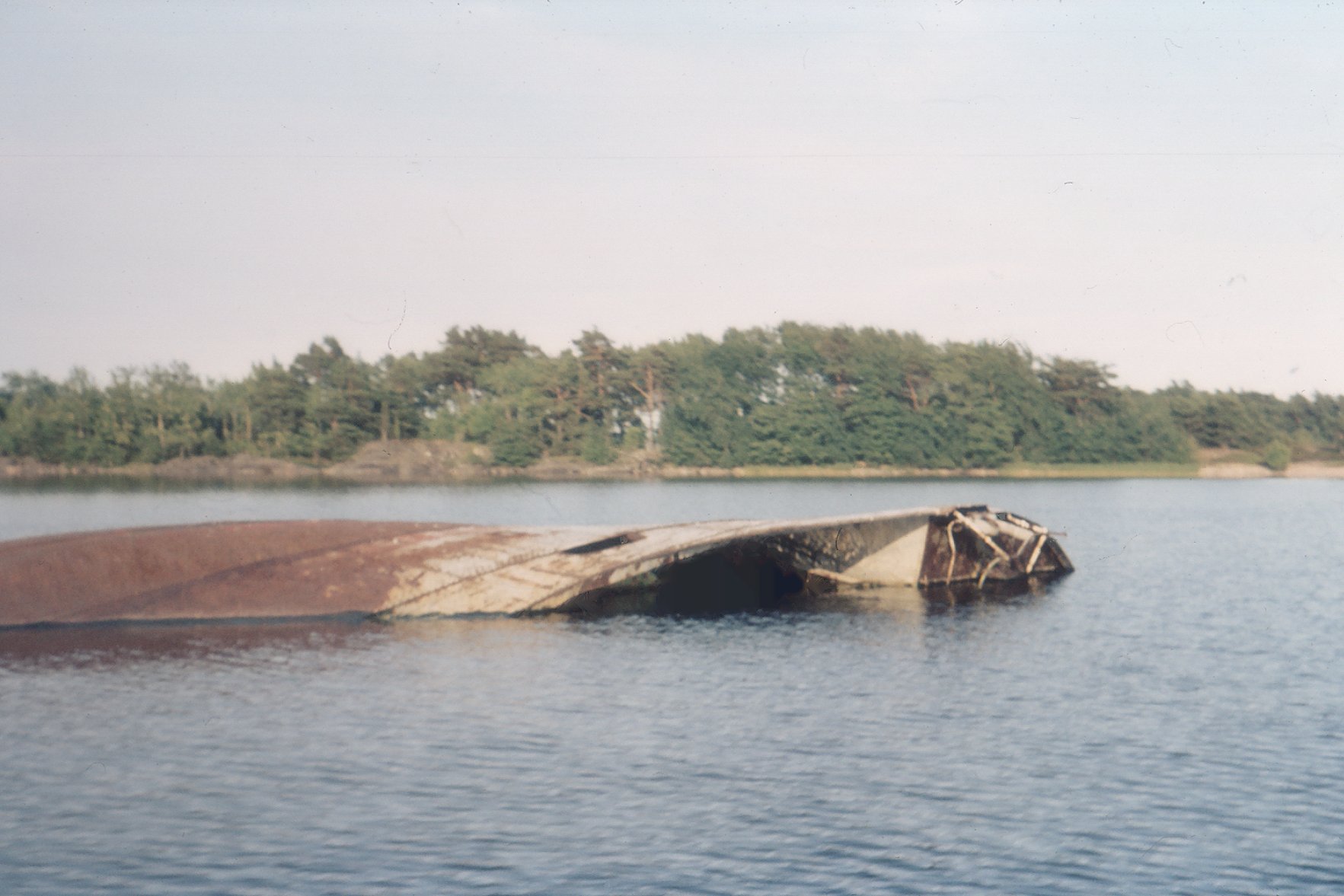 olyckan hände 23/10 1959 strax söder om Stångudden ,hon stog runt efter grundstötningen och bogserades sedan flytande upp och ner till den plats vid Bratten där man sen alltså försökte vända henne rätt !