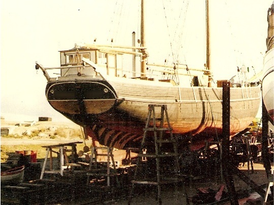 Flera namn på skutan. Henner Friser.Rebus.Haabet. Kom till Skärhamn på 30 talet. Ägarna