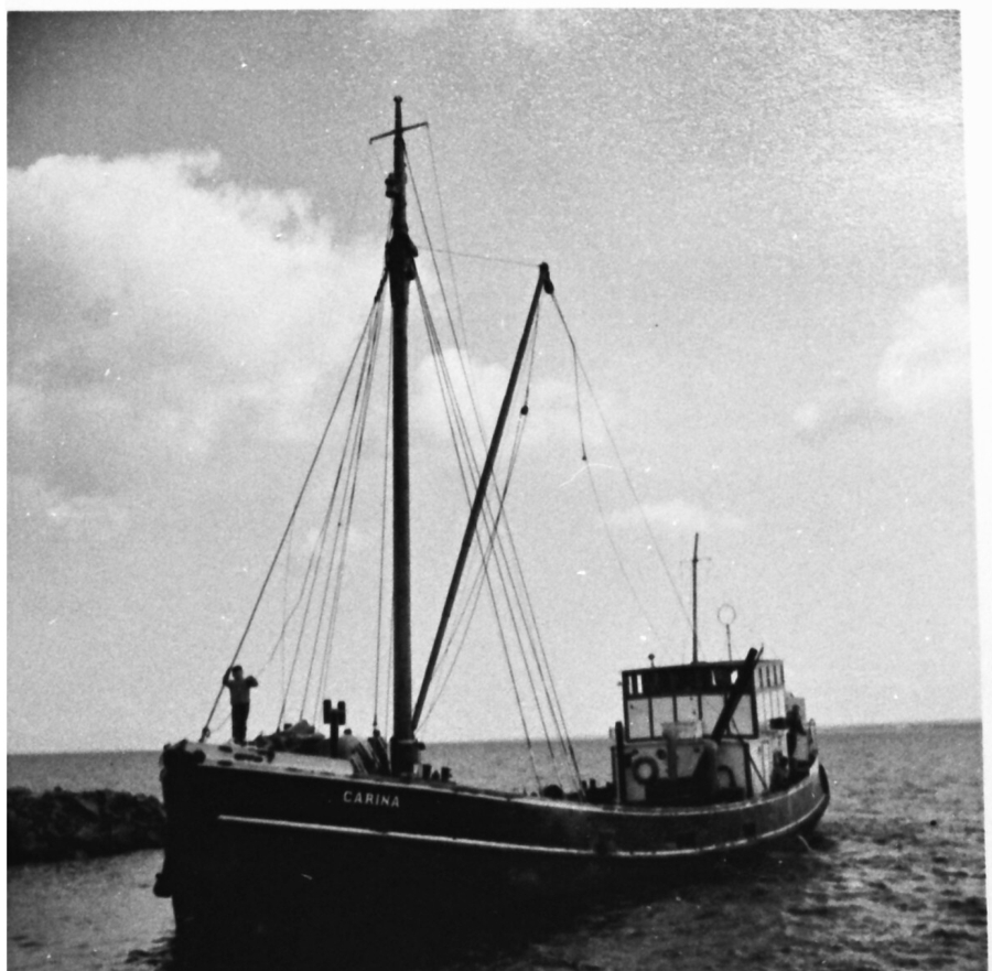 I augusti 1957 sjösattes skutan,assisterad av Kapdufvan som bogserade in till hamnen.