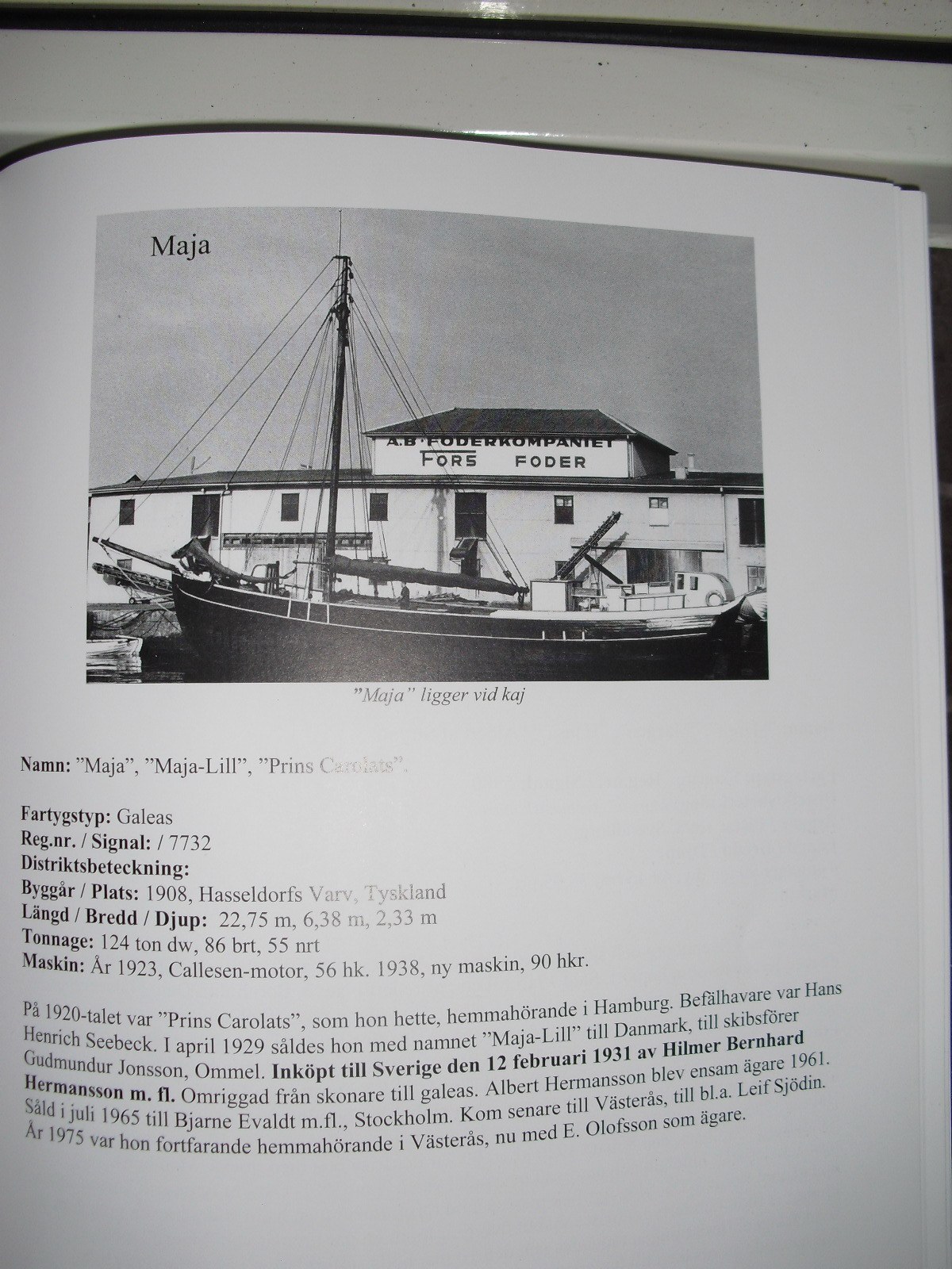 Torsten, så är det naturligtvis beträffande förnamnet. Jag tänkte inte på det i en hast. Jag bifogar texten med bild på Maja son den är återgiven i Tjörns båtar och jag bifogar även utdrag om byggmästaren från en skrift som heter Landgemeinde Haseldort. Jag gör ett nytt försök att få med rätt bild.