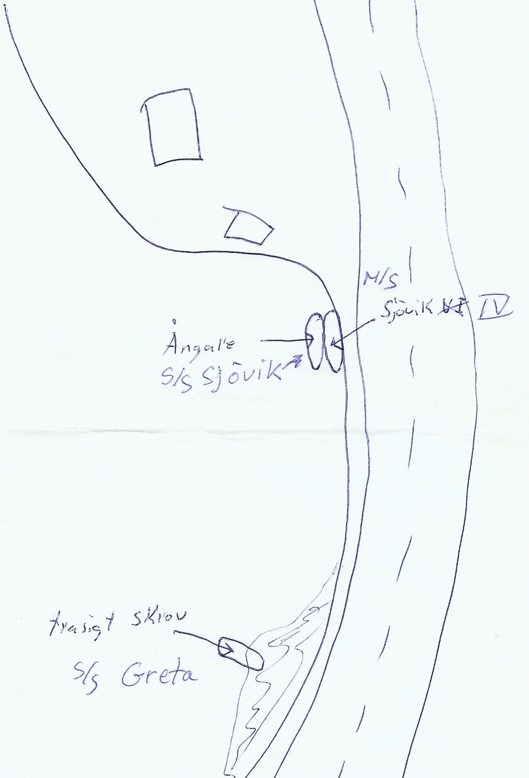 Vraken av dom två "Sjövik" är kvar ! ,dom ligger tätt intill stranden enl,teckningen ,