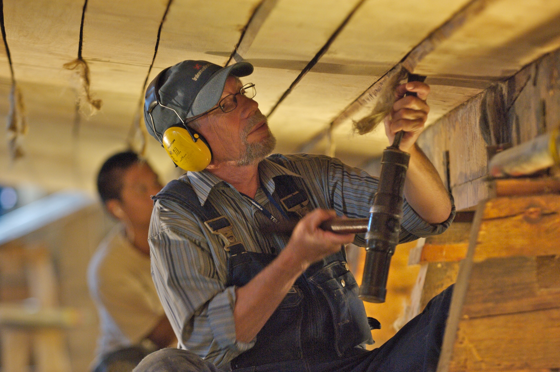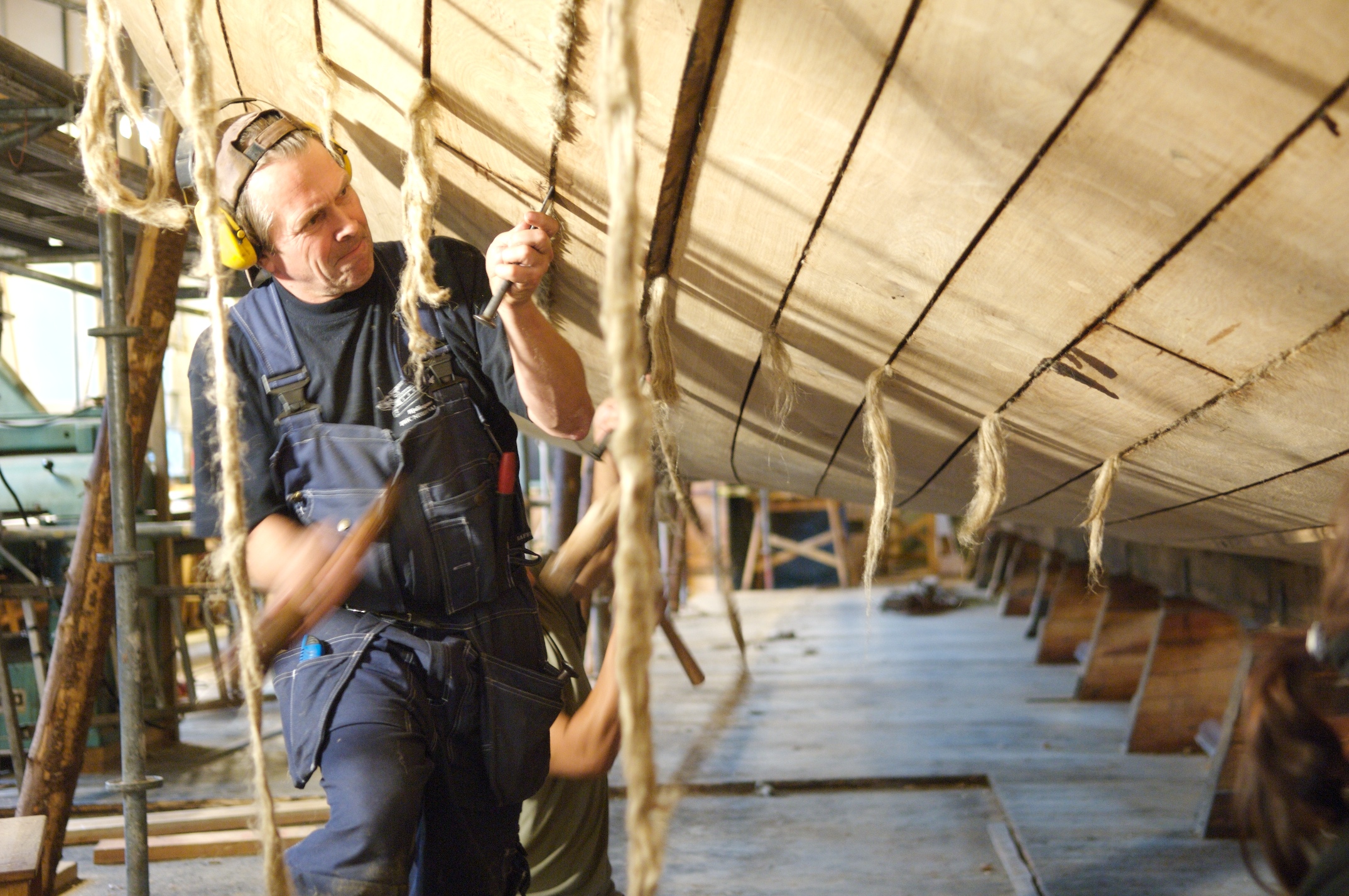 "Drevning är ett viktigt skede i fartygsbygget. Då man drevar gör man inte bara fartyget tätt, utan man får det också formstyvt eftersom drevet fixerar bräderna. Drevningen är ett hårt arbete. Arbetsredskapen är tunga och arbetsställningen för det mesta obekväm. På ett fartyg finns det ca 3000 meter nåt och det tar för en yrkesman 1 timme att dreva 1 meter nåt. Nåten är vanligen 3 tum djup och man fyller den tätt med drev och lämnar en fördjupning som är lika djup som den är bred. Fördjupningen fylls sedan med kokande beck som stelnar på plats.
