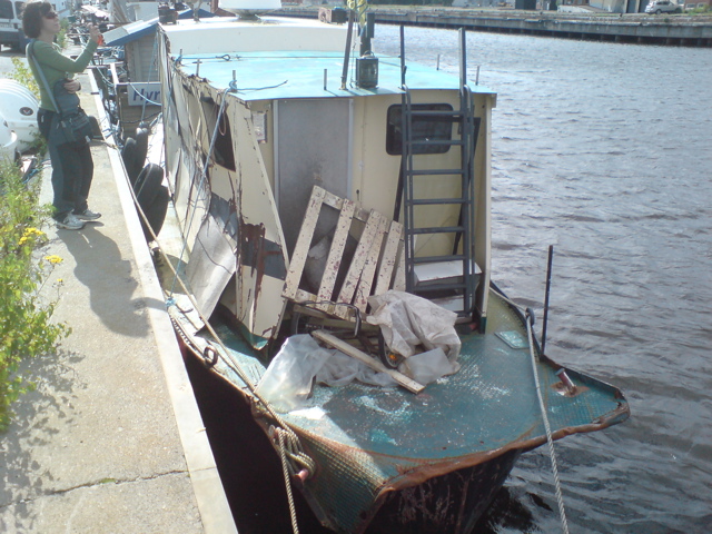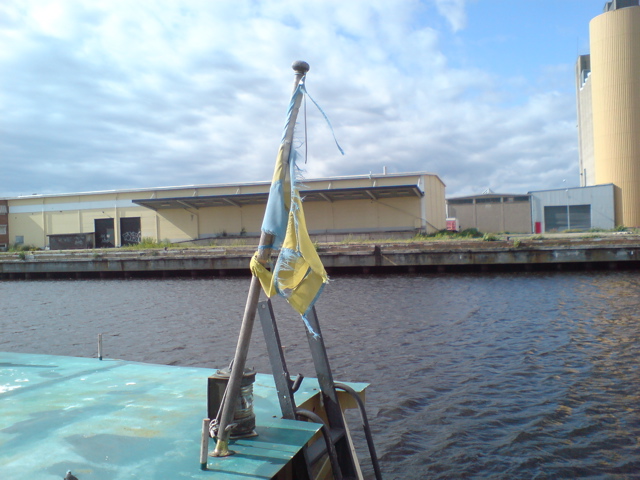I Gävle hamn såg vi något som har varit en båt.. med den absolut värsta flaggan jag sett!