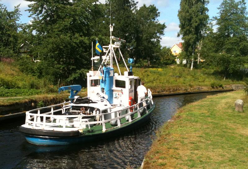 Bogseraren LJUSNE (byggd 1952 på Mohögs mek. verkst.) passerade Forsvik 28/7 på väg till Bloms bogsertjänst i Vänern.