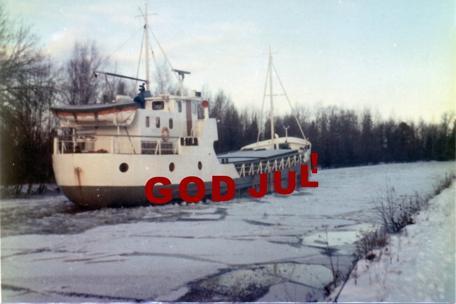 Bidrar med en Jul OCH Nyårshälsning med ett motiv som man troligen aldrig mer kommer att få se? ett Lastfartyg genom isen i Göta Kanal.