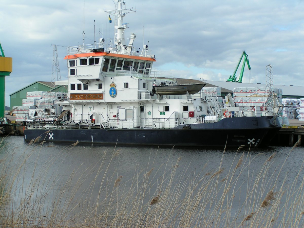 Har inget bra svar på det, men jag skulle kunna tänka mig att hon har varit sysselsatt med att se över utprickningen. Jag satt nämligen på Picassocafét (Jäkla trevligt ställe, rekommenderas hjärtligt...) i lördags och kisade i solskenet och funderade på vad det var för skuta som låg mer eller mindre på tvären i farleden och höll på med nåt en bra stund. Denna nos påminner om det fartyget. Nu var det tyvärr på ganska långt håll, så det är bara en teori.